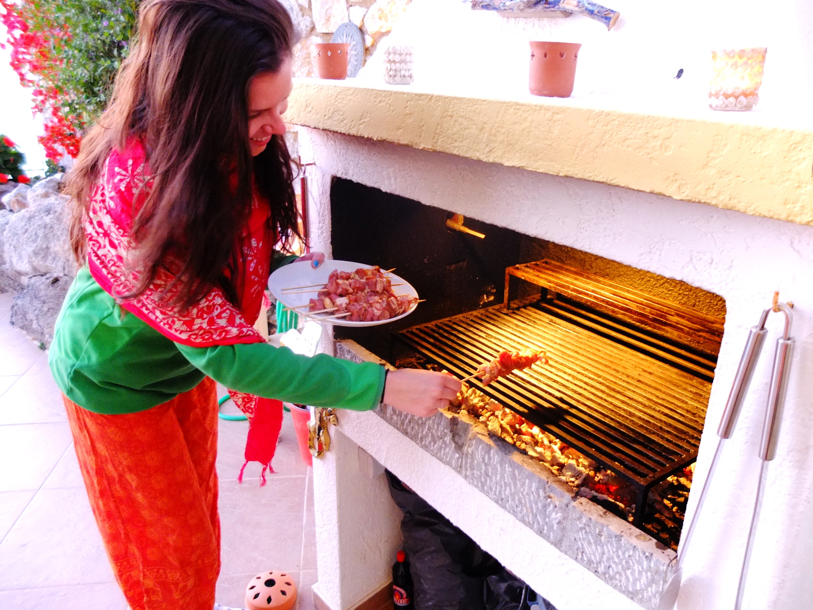 One evening my family and I created a Greek style BBQ, which meant lots of kebabs and delicious local sausages.