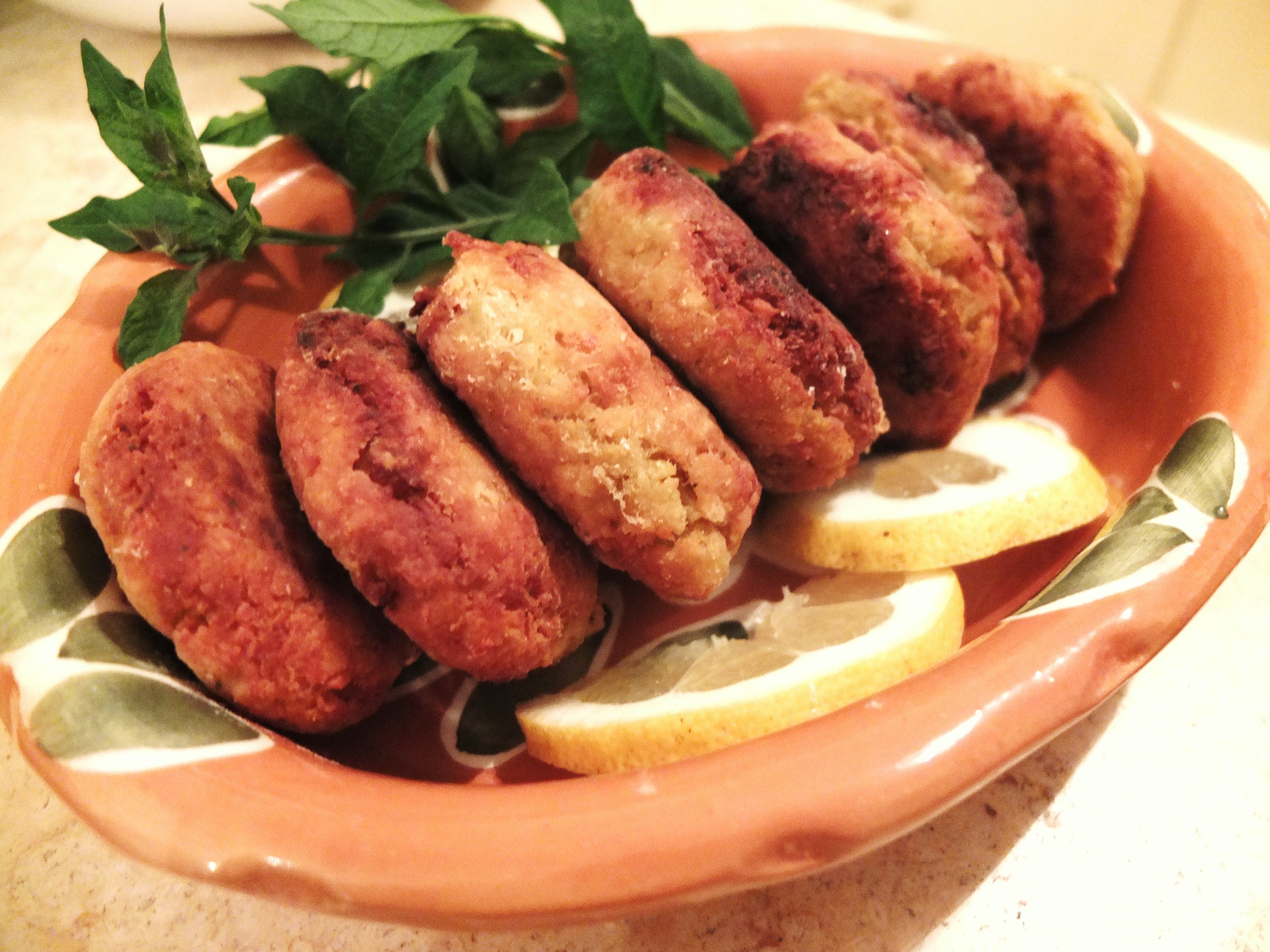 As part of this I made some lovely side dishes, namely chickpea fritters (“Pitaroudia”, a peasant dish from Rhodes) and roasted tomatoes (less exotic = thanks Delia). The fritters are super simple to make and very economical, yet provide a hit of flavour. They are great as a side dish or would be perfect for a light meal served with salad and cheese.