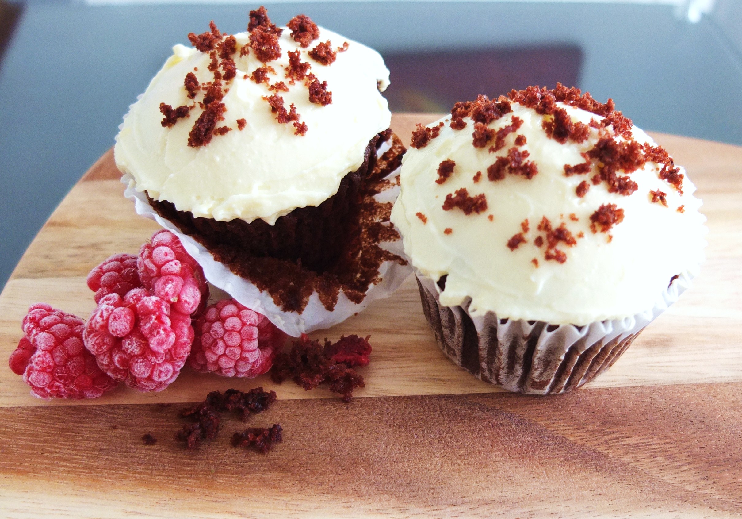 The real challenge with the original recipe was switching to a low fructose version without losing the taste. Luckily, by adding additional buttermilk and cocoa powder (alongside the dextrose) a successful outcome has been achieved! The really sweet part about these cupcakes is the hidden raspberry in the centre – like a tasty piece of treasure. Also the cream cheese* frosting is rich and creamy and it marries beautifully with the deep chocolate flavour. I can assure you, come any occasion these babies will be a foolproof hit!