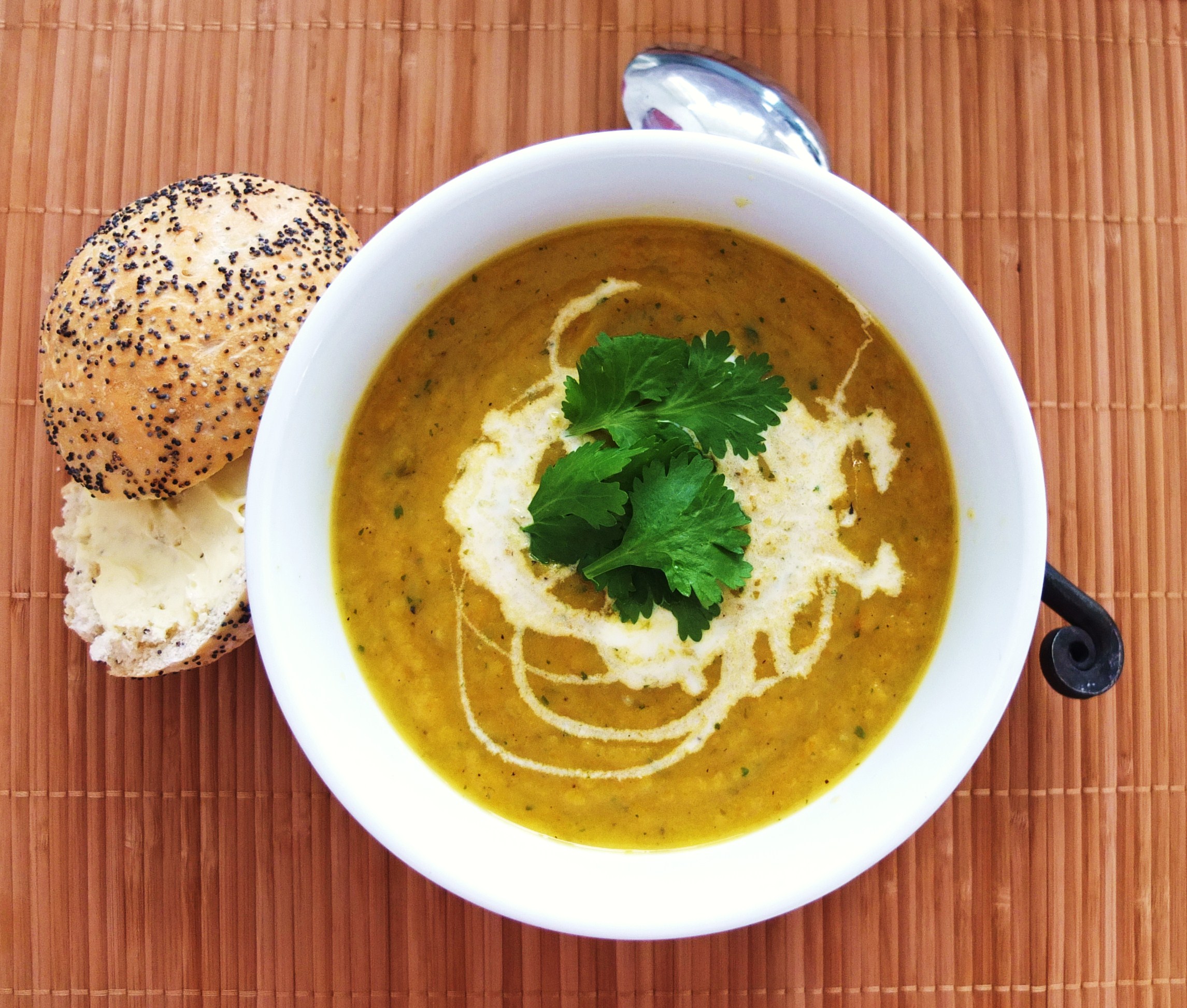 - Whizz the soup with a stick blender and sprinkle over remaining coriander