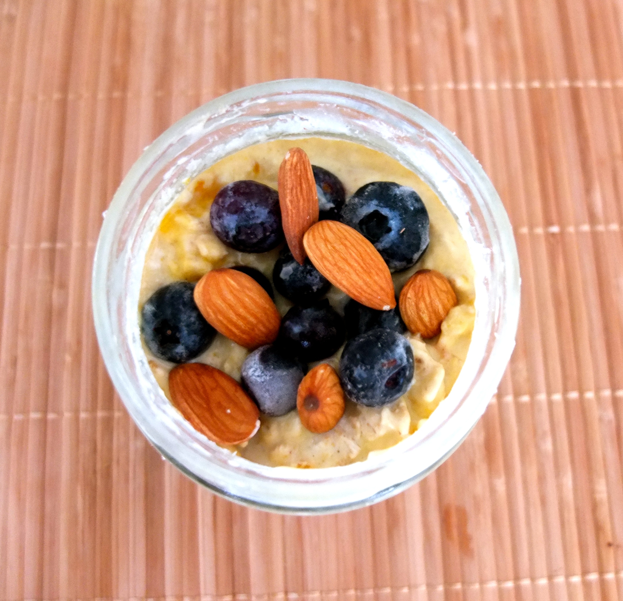 Overnight oats are one of my breakfast staples because they are versatile and foolproof: you simply mix whole oats with a splash of milk and full fat yogurt, then you can chuck in whatever else you fancy (often berries/seeds/nuts). When using an old jar they are even more ideal: seal the oats with the jar lid, pop in the fridge overnight, and grab on the way out to work. Simples. This time I have opted for coconut and passionfruit, however I also like adding blueberries, almonds, chia seeds, cacoa/cocoa powder, raspberries, cinnamon, grated apple, ginger, cashew butter, strawberries, pumpkin seeds, orange zest, espresso powder… you name it, chuck it in (as long as the fructose content is low!… no granola please!). For the reasons above, overnight oats should be your breakfast BFF; they never get boring and are never hard work.